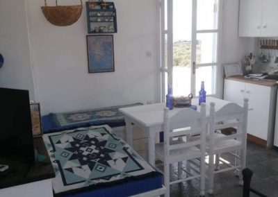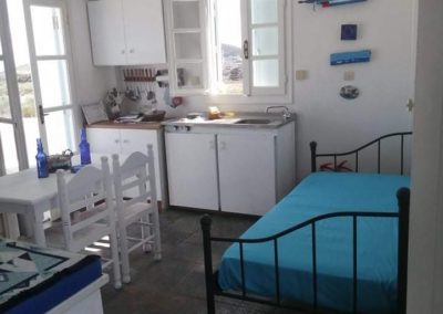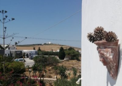 Πανέμορφο μόνο χώρο στούντιο 50τμ στο δεύτερο όροφο με πανοραμική θέα Μύκονο και Νάξο, που βρίσκεται 1,5 (ενάμισι) χλμ έξω από τη Νάουσα επάνω στον κεντρικό δρόμο Νάουσας Δρυου, μέσα σε ένα ελαιώνα 16 στρέμματα φιλοξενεί 4 άτομα σε σταθερά κρεβάτια.